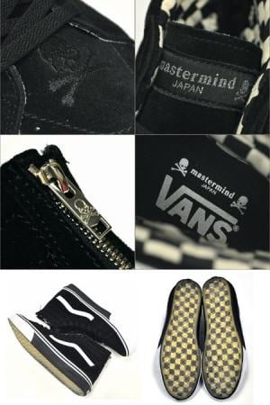 mastermind JAPAN has been busy with collaborations as of late, having recently teamed up with Converse on a Jack Purcell mid. Well, the Japanese brand is back at it- teaming up with the Vans team, which has resulted in a Sk8 hi. The resulting colorway is a straightforward black/white; however, a skull & bones image on the toe cap, black/white checkered pattern along the inside, and heel zipper add much by way of accents. These are available for purchase now from participating retailers.