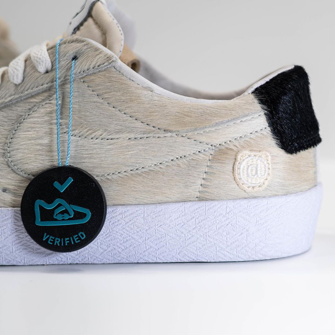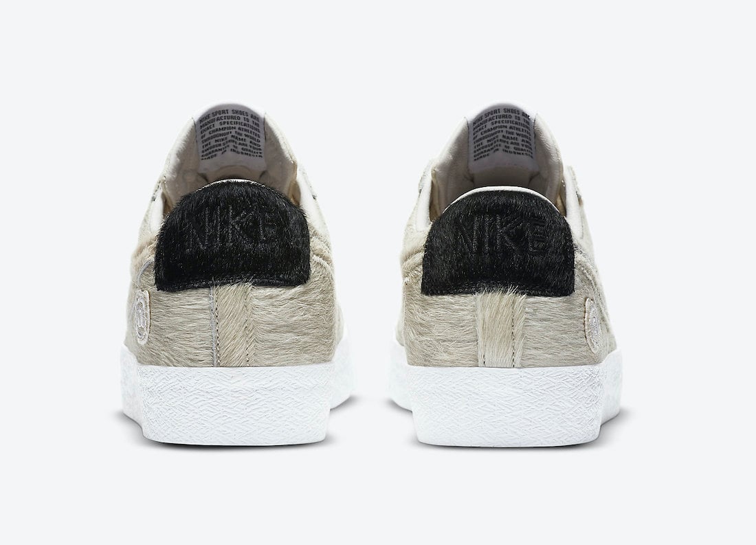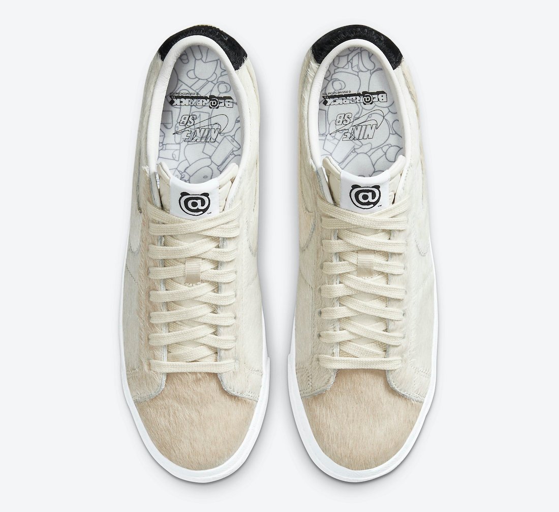 Looking closer, this Nike SB Blazer Low comes dressed in a Light Cream and Black color combination. Constructed with pony hair throughout the upper while Medicom Toyโs BE@RBRICK logo lands on the lateral heel and tongue. Other details include a White midsole and a Gum rubber outsole.