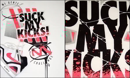 Although the Nike Air Tech Challenge II Hot Lava released months back, you can purchase this T-Shirt from Mi Gente Clothing dubbed “Challenge”, for obvious reasons. This shirt matches the Nike Air Tech Challenge II Hot Lava perfect, and features the “Suck My Kicks” slogan. Finishing off this shirt is the same hot lava splatter known on the Challenge 2. Available now at Mi Gente for $40.