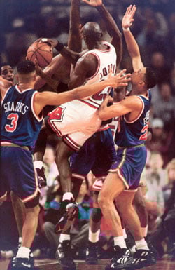 Mike and the team were back in the playoffs and flawlessly defeated the Atlanta Hawks in the series 3-0. In the Conference Semis, they met with the Cleveland Cavaliers and defeated them with out a loss, winning the series 4-0. In the Eastern Conference Finals, the Bulls had to face the New York Knicks yet again. Mike and the team lost the first two games which were both in New York, but kicked back into gear, winning the next four straight games. The Chicago Bulls took the series 4-2. Back to the NBA Finals, Mike and the team defeated the Phoenix Suns 4-2 to grab the NBA Championship Title. MJ was again voted the NBA Finals MVP, and set a NBA Finals record by averaging 41.0 points against the Suns alone. Mike’s averages for the postseason were: 35.1 points, 6.7 rebounds, and 6.0 assists.