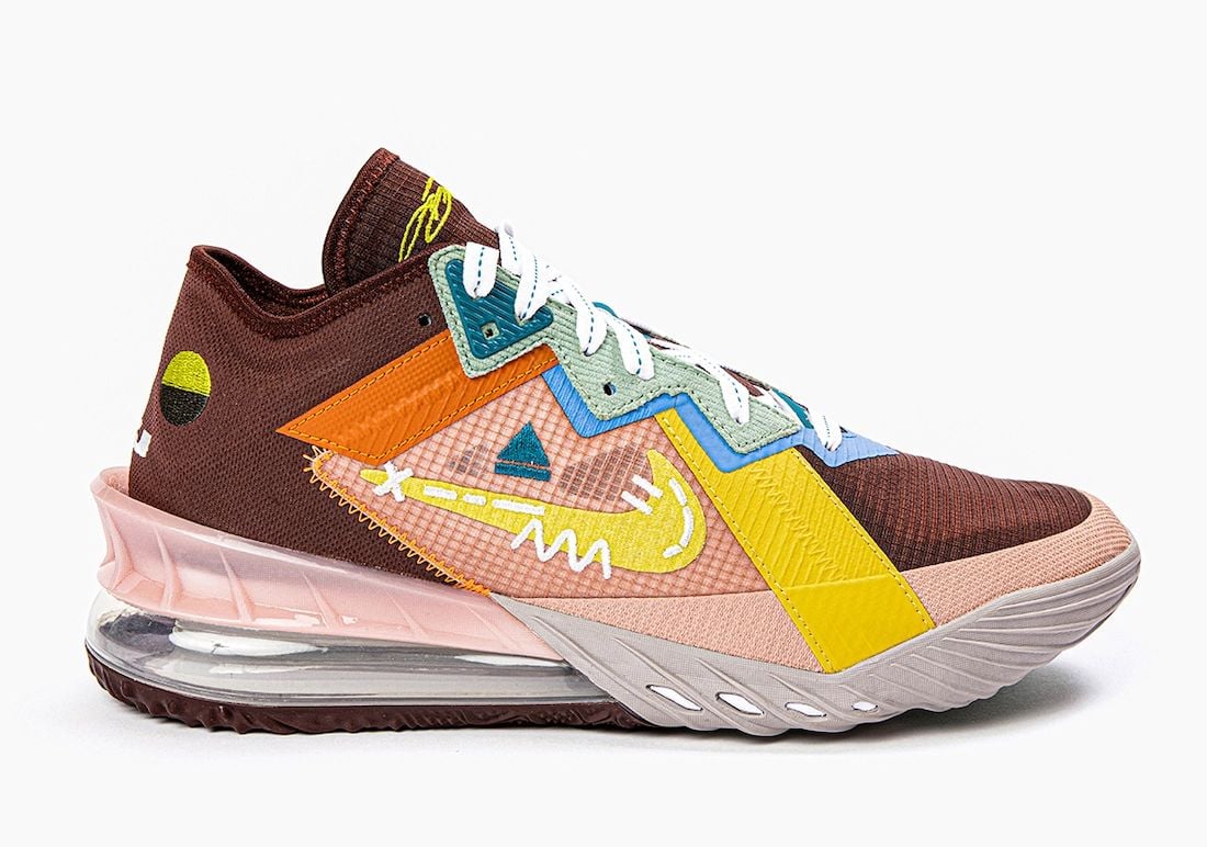 The โMad Kingโ Nike LeBron 18 Low is a tribute to the Bantu people, aย family comprised of over 400 ethnic groups in Africa, and their writing symbols. Utilizing various icons representing wisdom, unity, greatness, and the future. As for the colors used, the shades nod to earth, sky, forest, and water.