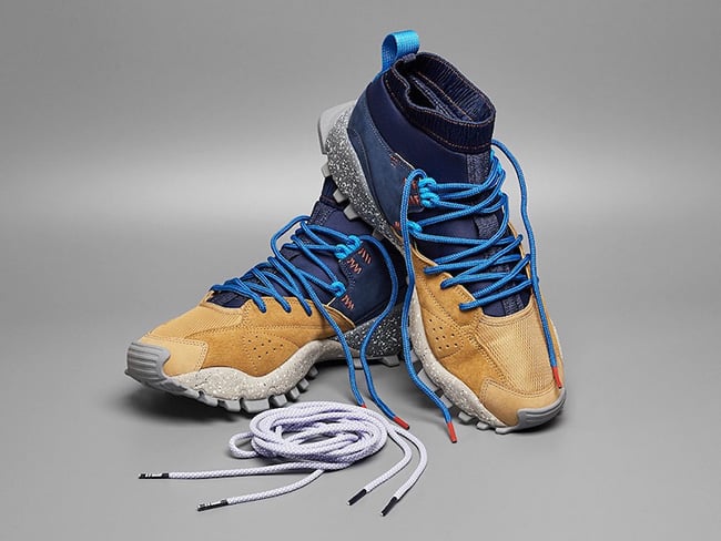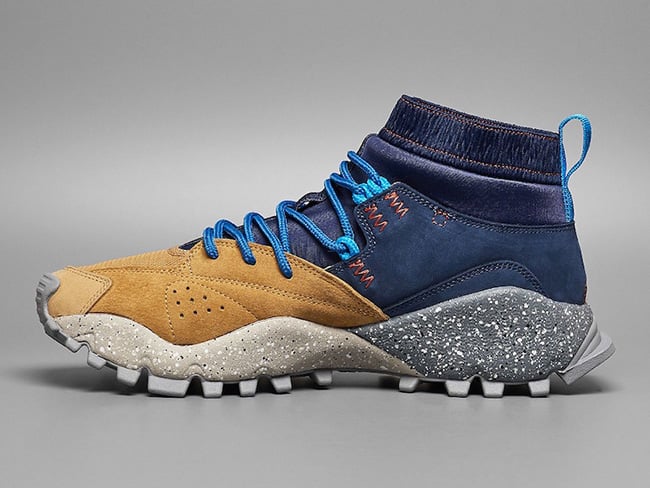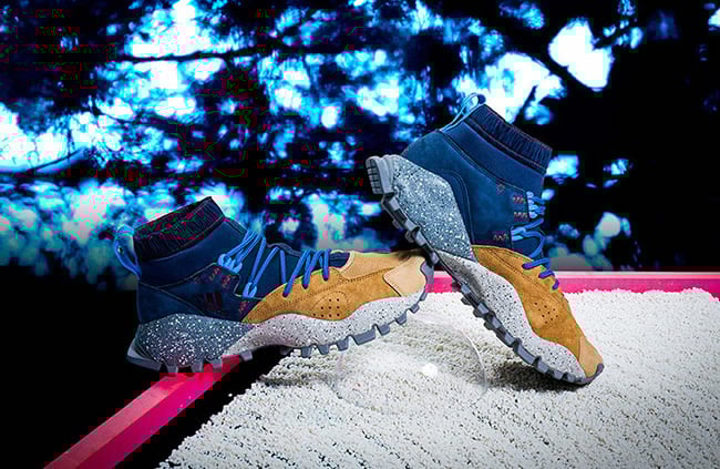 The mita sneakers x adidas Seeulater is the modern interpretation of the outdoor classic and is inspired by the city of Tokyo. The Blue parts on the Upper refer to the Tokyo streets which were packed with outdoor stores that had sold the Seeulater once upon a time, while the Brown areas reference rocks and midsole – which is speckled and glows-in-the-dark is inspired by the moss you would see growing on rocks.