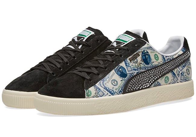 The mita sneakers x Puma Clyde $1,000 Bill is set to release today, December 22nd, 2016 at select Puma retailers like END. Retail price is set at $135. Continue to scroll below to check out additional images which will give you a closer look.