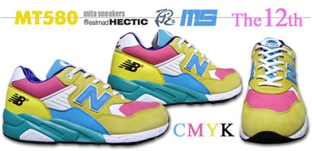 Pictured above is what is labeled the “CMYK” MT580, a mixture of light colors spread out through the whole shoe. A little less eye catching from the past projects, but nevertheless something new and exciting. Via altsnk.