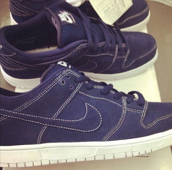 In an attempt to recreate the original Reese Forbes-designed Denims of 2002, Nikes SB line has created these Navy/White-Stitching Dunk Lows. Achieving the faux denim look, how do you sneakerheads feel about these SBs that are due out this Summer? Check out the pics and keep it locked to SneakerFiles for more on this drop.