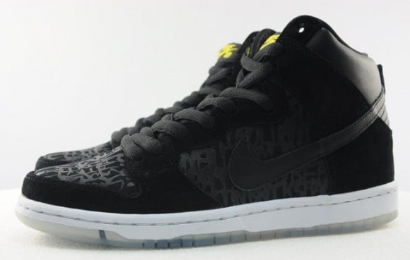 Come December 6th, Neckface x Nike SB will be unleashing yet another collaborative gem. With the Nike SB Dunk High Premium serving as the shoe of choice, all of you sneakerheads are in for a true treat. Fully equipped with a clean black suede base accompanied with Neckface print underlays, these kicks also sport a vibrant touch of yellow as well. Place all of these creative goodies atop a crisp white midsole and translucent outsole and you have what will surely be yet another SB retail hit. Check out some detailed angles after the jump and be sure to drop us a line in the comments section below.