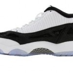 Both of this months remaining Retro releases are currently available for purchase and ready to ship. The Black/ Metallic Silver AJ5โs along with an all new White/ Black- Metallic Silver AJ11 Low are ready for the taking. Both sneakers feature the blue tinted iced out bottoms and simple black/white- metallic silver color blocking throughout.