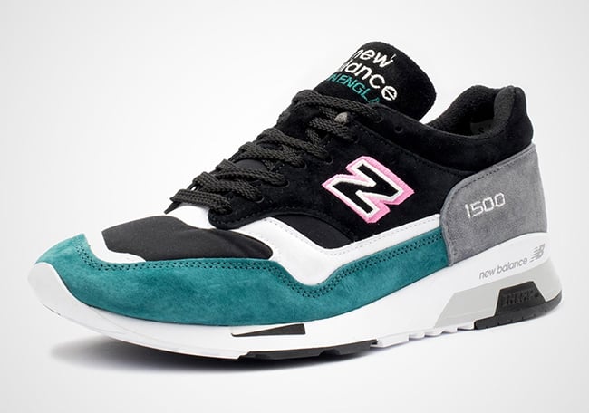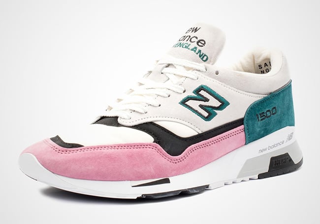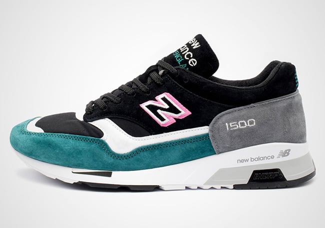 To be a bit more specific, the two New Balance 1500 releases comes dressed in White, Pink, Teal and Black throughout, while flipping the color blocking between them. The first pair uses White suede and nylon on the uppers while Pink suede covers the mudguard and Teal wraps the heel. The second utilizes Black on the uppers while Teal suede is applied to the toe and Grey on the heel. They are completed with Pink accented on the โNโ logo.
