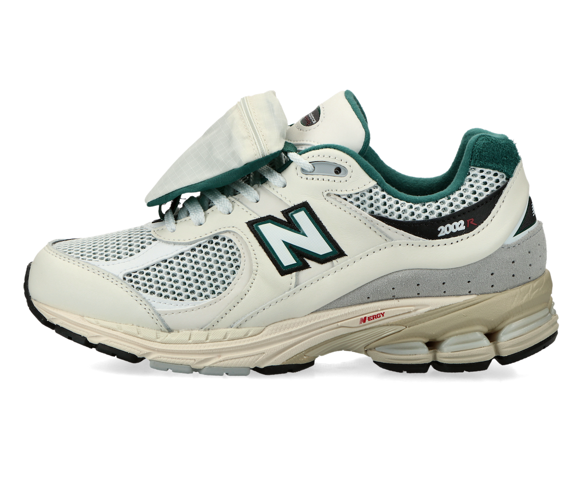 This New Balance 2002 comes dressed in a Sea Salt and Nightwatch Green color combination. Constructed with leather, shaggy suede, and open mesh for a premium look. Highlighting the pair, it comes with a removable pouch on the tongues and Green accents. Other details include N-ERGY cushioning and a two-tone rubber sole.
