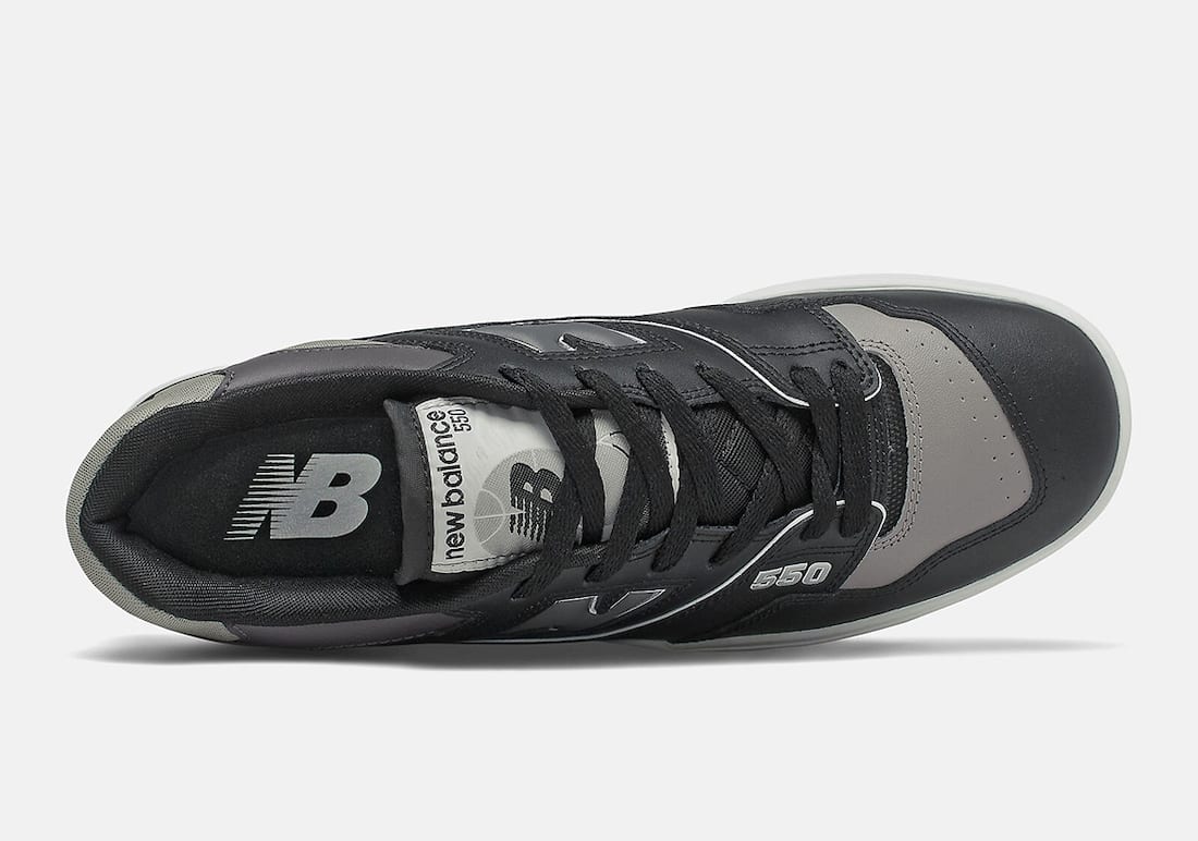 Looking closer, this New Balance 550 comes with Black leather across the base while Grey leather adorns the leather across the toe, ankle, and heel. Furthermore, a darker Grey appears on the โNโ branding that features White outlining. 550 then lands by the heel thatโs embroidered in White, Black covers the liner, and the NB branding on the insoles features Grey. Finally, Black on the laces, White on the midsole, and a Black and Grey rubber outsole finish the look.