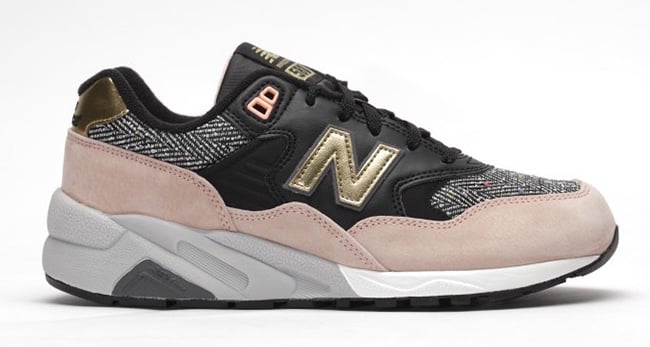 This New Balance 580 is highlighted with Black leather that lands on the panels. Following we have woven material that is placed on the toe box and around the collar. Adding flash is Gold which is placed on the tongue, heel and โNโ on the sides. Other highlights include Bleached Sunrise across the mudguard, White on the midsole and Black across the outsole.