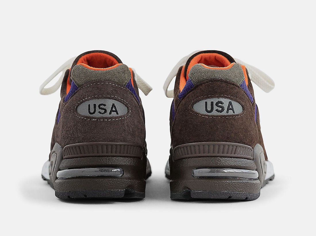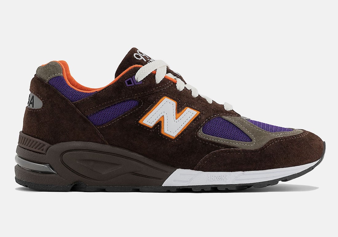 This New Balance 990v2 features shades of Brown, Purple, Orange, and Grey throughout. Constructed with leather, premium pig suede, and mesh, while โUSAโ branding appears on the heels. The signature โNโ logo lands on the panels, while a two-tone midsole and a Black rubber outsole finishes the look.
