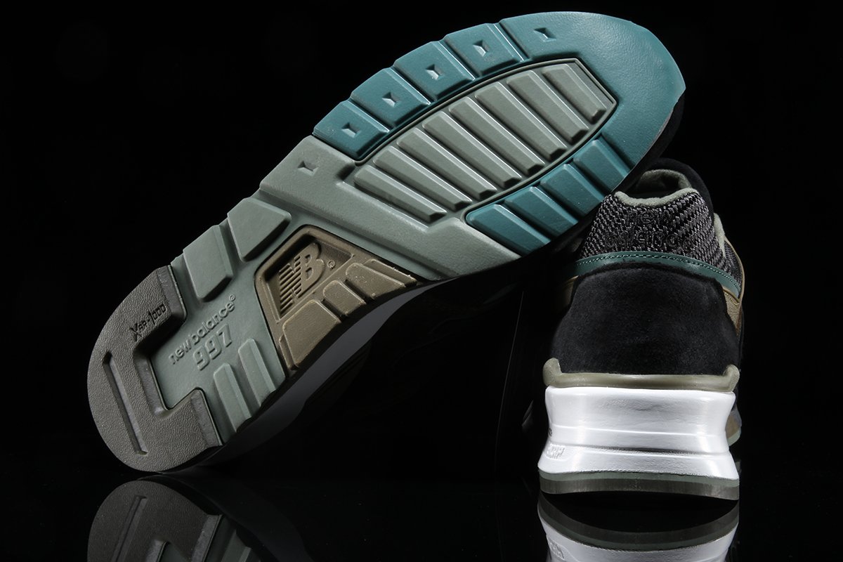 As you can see this New Balance 997 features Black textile along with shades of Brown throughout which makes for a neutral look. Adding to the premium theme is the use of pig suede. Light Blue reflective accents wraps the โNโ branding and used by the collar. Both White and Black make up for the midsole while shades of Green covers the outsole.