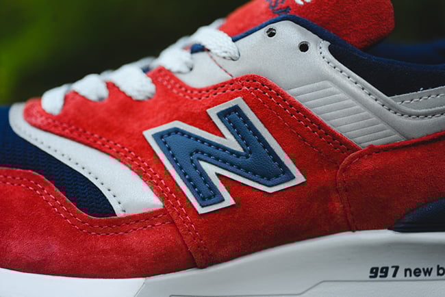 The New Balance 997 featured in the Ski Connoisseur collection comes in a red, navy blue and white theme. Red is used for the majority of the uppers in suede material, blue then hits the mesh tongue while placed around the collar. Other details include a grey midsole that then turns to white.