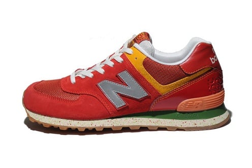 Last week we showed you that the New Balance 574 model was recently designed with a New York Yankees-esque navy/grey/white color palette. But since the Summer season is finally about to get here, New Balance has turned to a more tropical source of inspiration. Using the M574 model, New Balance offers us some tropical flavor by way of a Tropical Fruit pack that consists of three very fruitfully colored uppers in different combinations of green/red/yellow/orange. Also of notice are the speckled soles each of the three colorways in this Tropical Fruit pack come with. Will you taste this New Balance M574 rainbow?