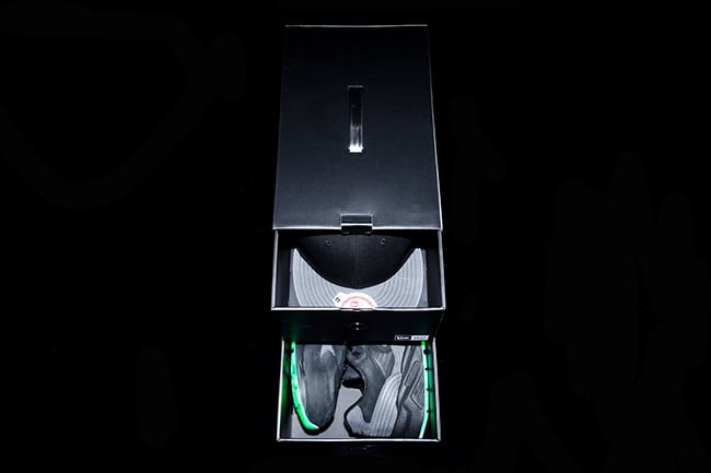 The New Era 9FIFTY snapback, which is much like the shoes, comes with wool along with glow in the dark and reflective accents with NB branding.