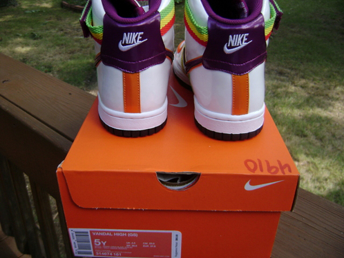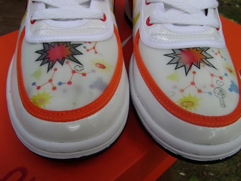 Nike has done something nice for the kids again, releasing a Nike Vandal High as a kids only exclusive. The side panel and toe box feature a hologram which I believe is inspired by Science with a explosion and beakers. Main base of this Nike Vandal High is White with accents throughout of Green, Yellow and Red. Check out your local Nike retailer should be arriving soon if not already. Via RetroBoss.