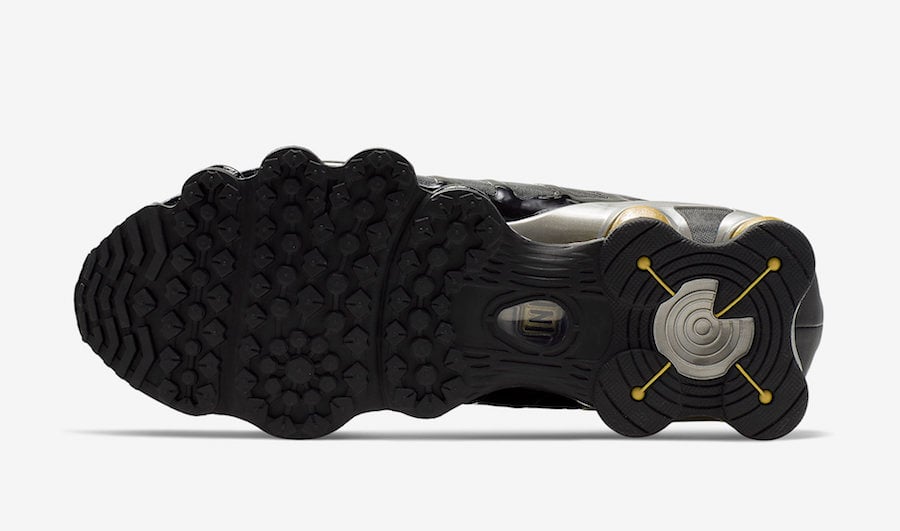 Looking closer this variation of the Nike Shox features Black mesh throughout while the same shade lands on the cage. Following we have Silver detailing on by the toe, midsole and heel. Adding pop is Gold on the Swoosh logo and Shox and instead of using โZโ, the brand has replaced it with โNโ for Neymar on the tongues and heels. Finishing the look is a graphic on the insoles.