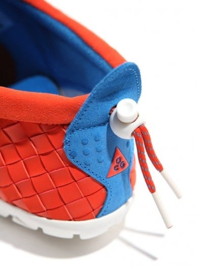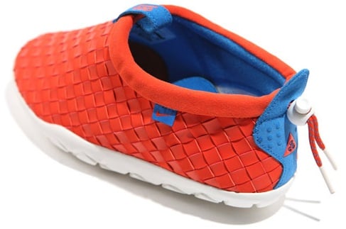 After bringing you a closer look at the Nike ACG Air Moc LT, we now have a new colorway to present to you. Pictured here is a Nike ACG Air Moc LT whose interwoven upper comes in team orange. Royal blue accents can be seen by way of the heel tab and inner lining. And the white soles make this colorway one that New York Knicks fans might consider wearable. But how about the silhouette- do you think it’d go well with an Amar’e or ‘Melo jersey?