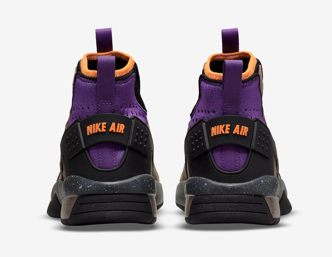 This Nike Air Mowabb comes dressed in a Trail End Brown, Pitch, and Prism Violet color combination. Constructed with soft nubuck on the upper while mainly dressed in shades of Brown. Highlighting the pair, Purple adorns the tongue, pull tabs, and outsole with Orange on the liner and branding. Lastly, a Black midsole with speckled detailing completes the look.