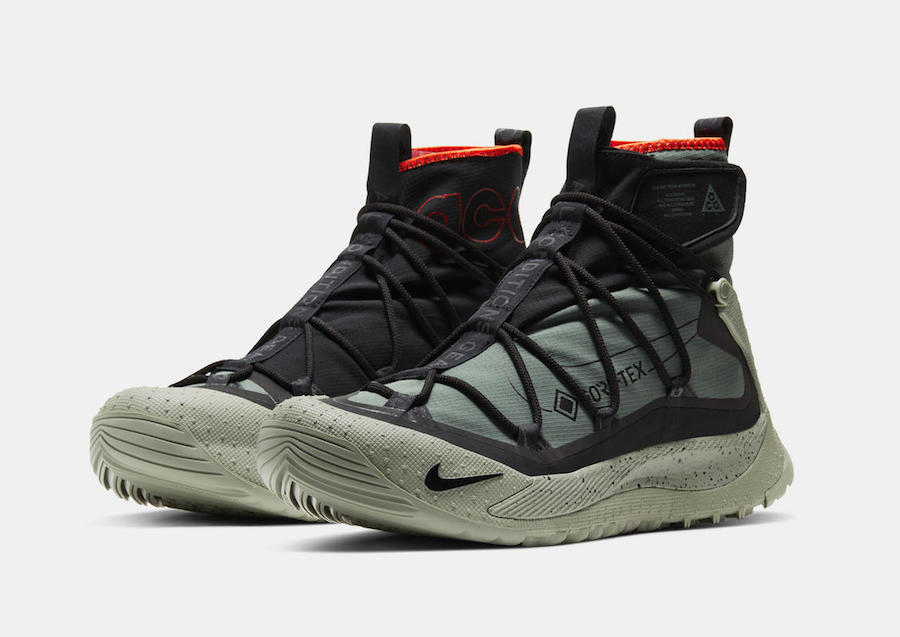Highlighted by a Gore-Tex upper, which keeps the elements out, the shoe incorporates reflective hits along with an easy-entry Velcro closure (inspired by the sleeves on ACGโs technical winter jackets). The shoe also features an aggressive sticky rubber outsole and new lug configuration, providing traction on the most difficult surfaces, along with Air cushioning underfoot.