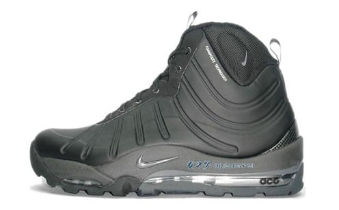 It looks like there will be PLENTY of Nike boots to choose from in order to prepare for the upcoming cold front that accompanies Fall/Winter season. Some sneakerheads will be particularly attracted to the Nike SFB Pendleton boot because of the materials used and unique sole that breaks from the more conventional boot soles and resembles more so that of a sneaker’s. For you foamposite fans, there is the Nike ACG Foamposite Bakin’ boot pictured here in a black/black colorway. With foamposite technology along the upper and a visible Air sole unit near the heel, the Nike ACG Foamposite Bakin’ boot could very well be Pendleton’s biggest competition. What do you think? Either way, this Bakin’ boot will be a part of Nike’s upcoming Fall/Winter collections.