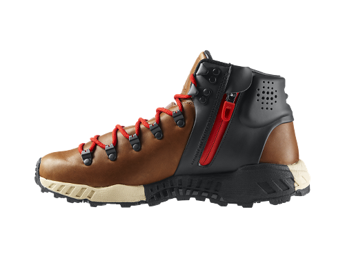 This quickstrike version of the rugged, Zoom-equipped boot sports a premium waterproof brown leather upper with a padded black collar, red rope boot laces, Trail Frame support and a heavy duty black rubber outsole.