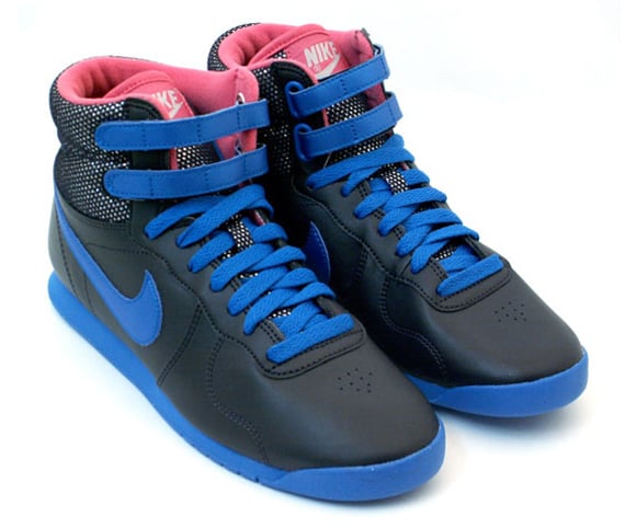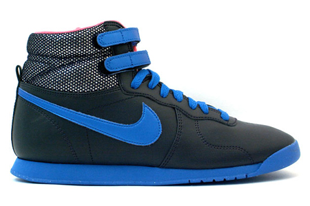 The Nike Aerofit is definitely a hot item on the ladies’ menu. The Nike Aerofit High Women’s has been released in a clean black/blue-pink colorway. The upper uses a full black leather upper with a blue leather swoosh to go along with the blue sole, ankle straps, and laces. Pink is found on the inner lining and tongue tag to add a feminine touch to the shoe. The main feature of the shoe is the 3M mesh ankle , which is sure to turn heads during any Myspace photo shoot. These sneakers are available for purchase now for about $100.