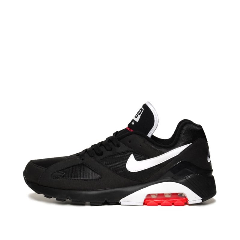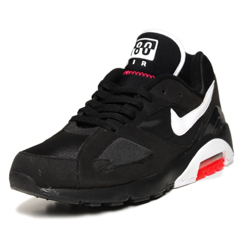 About a week ago, we previewed the Nike Air 180 in a couple new colorways that are set to release this Fall/Winter season with, what looks to be, an off white/military blue and black/white/red colorway. Today, we have more images of the Black/White-Solar Red version of the Air 180. This classic HOA-staple running comes in a black mesh and suede upper, white panels and Swoosh, and splashed with Solar Red for some color. You can grab them early at oversea shops like End Clothing.