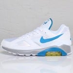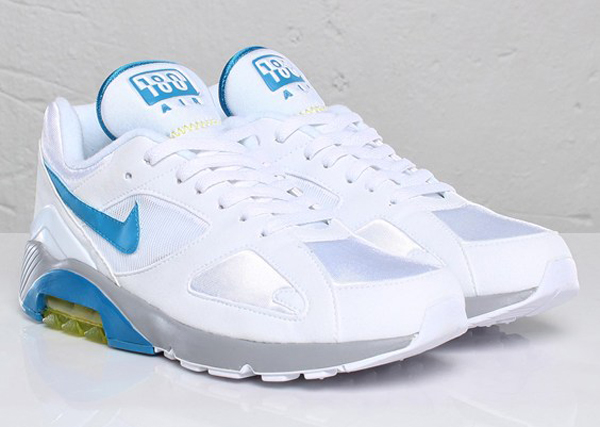 The Official colorway has surfaced for the upcoming Nike Air 180. The sneaker will officially sportย White/Imperial Blue-Matte Silver-High Voltage, that will be due for a release next month. Unless you can get an early release pair, you can just bask in the moment with some new images in the meantime. Enjoy.