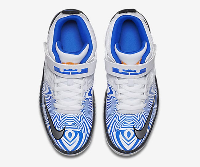 Featuring a White, Photo Blue, Volt and Metallic Silver color scheme. Looking closer, you can see that this Nike Air Akronite features a White base while Photo Blue in an interesting design covers the toe box. The same shade is also applied to the liner and LeBron’s branding across the strap. Other highlights include a Black midsole with a Blue speckled overlay and a Basketball patch towards the heel.