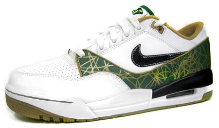 What appears to be the best thing about this particular model, is the lack of prints used in the past like Safari and others. This time around, Nike applies the traditional Green, White and Gold color-way with the addition of an abstract like design. In addition, the Black patent leather swoosh and accents stand out very nicely on the White leather upper. Expect these to be released soon at select Nike retailers like Standard ATL.