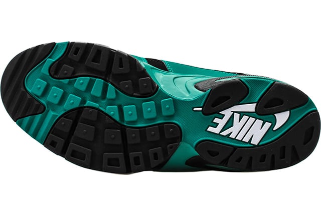 In addition to the teal uppers, black weaves its way through which could be an away pair for fans. On the swoosh and Ken Griffey Jr. number 24 is the use of white, which allows both to stand out to the crowd.