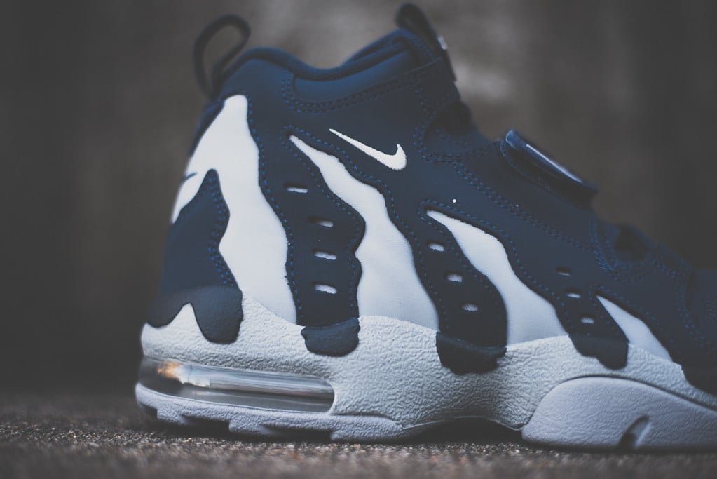 Like most Nike Air DT Max ’96 releases this year, this iteration comes complete with smooth nubuck and leather combination uppers, however, differs with a nostalgic Cowboys-inspired brave blue and wolf grey colorway.