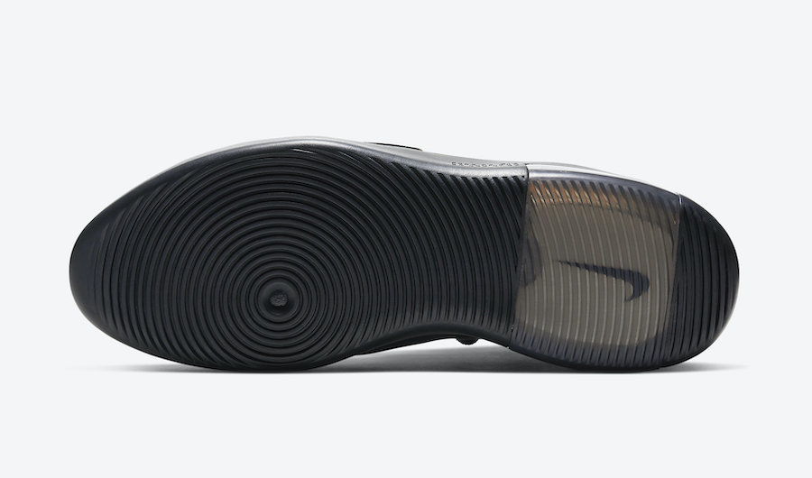 The Nike Air Fear of God 1 โTriple Blackโ is one of two colorways releasing for Spring 2020, while the other pair comes highlighted in โStringโ.