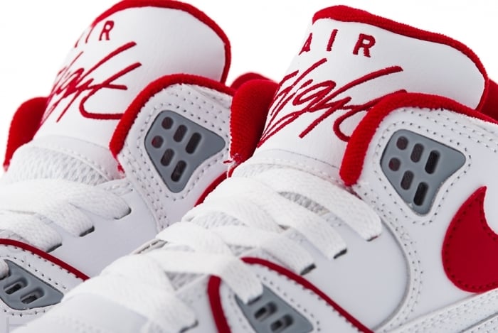 First seen back in June, the Nike Air Flight ’89 “White/Varsity Red-Wolf Grey”ย has landed up at more retailers overseas.