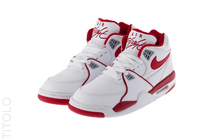 What will hopefully make its way to the US soon, you may purchase the Nike Air Flight ’89 “White/Varsity Red-Wolf Grey” from select UK retailers including Titolo today.