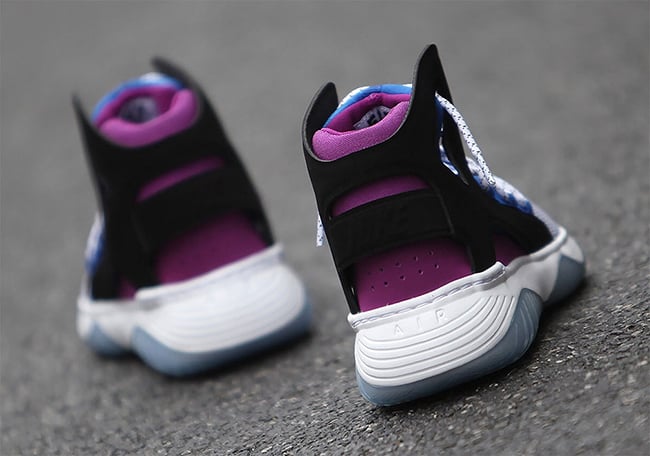 While you can probably expect different colorways to debut, the pair shown comes in Blue, Black, White and Berry which reflects that of the original release.
