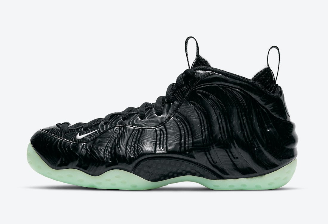 This Nike Air Foamposite One comes dressed in a Black and Barely Green color combination. Looking closer, the pair features Black on the Foamposite shell with a shiny overlay and a crinkle-like finish. Following, White adorns the liner, lined pull tabs, and mini Swoosh embroidered on the forefoot. Instead of the 1 Cent logo on the heel, we now have the signature All-Star branding. Lastly, Barely Green appears on the outsole that will glow in the dark.