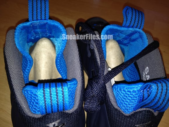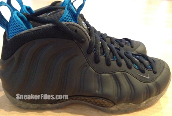 Decked out in an Obsidian Foamposite shell upper, the kicks sport a matching eyestay, laces and collar mesh while sitting atop an icy outsole. Grey appears on the inner lining and on the branding and tongue while bright blue/turquoise mesh appears on the inner sleeve, footbed and outsole. Said to be releasing later this year, the production version is set to feature grey accents in place of the bright blue.