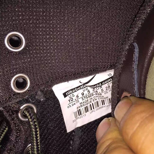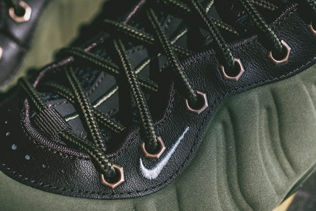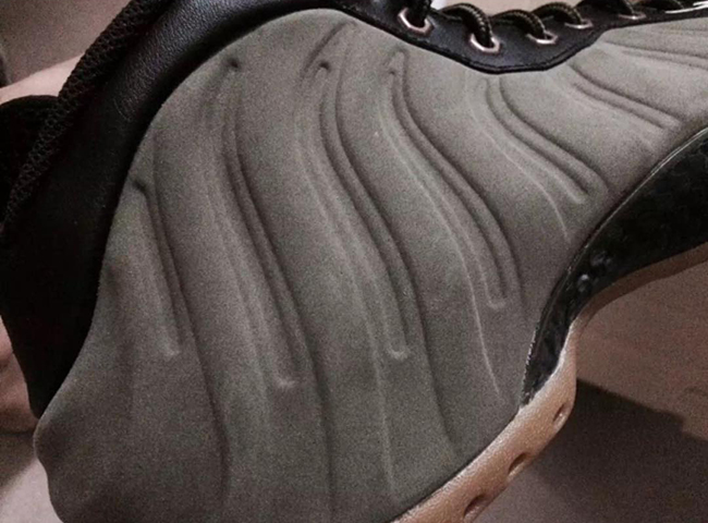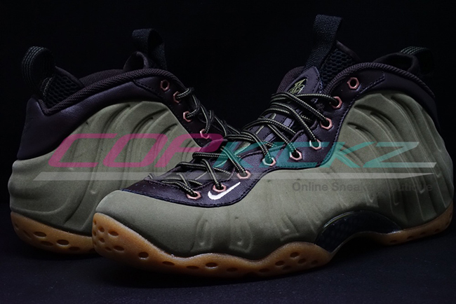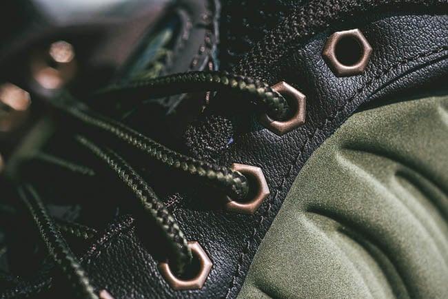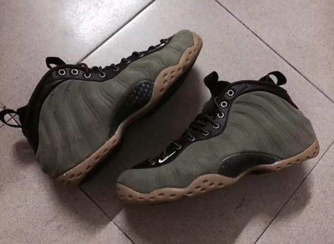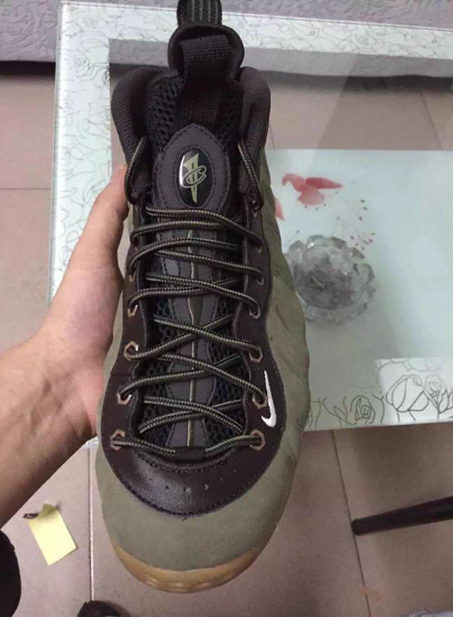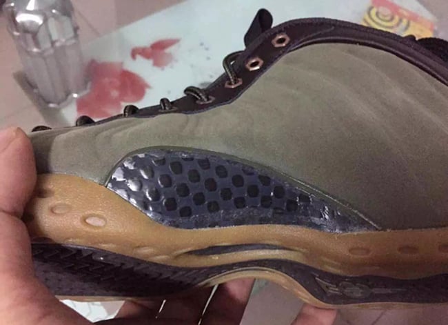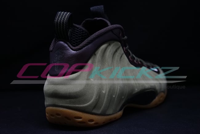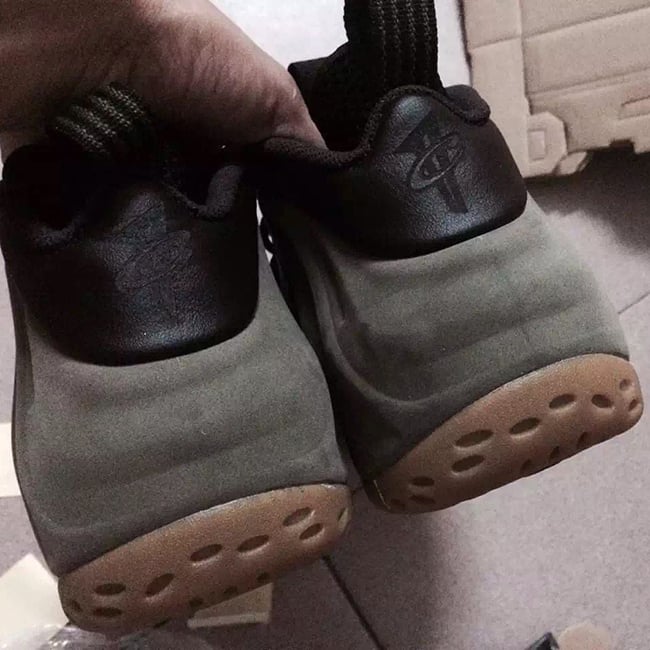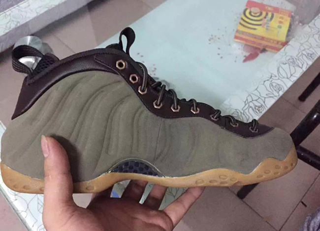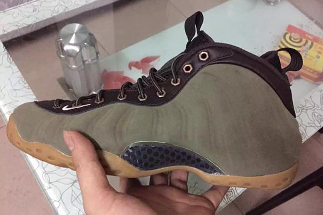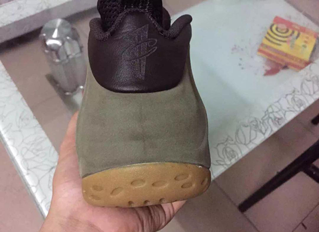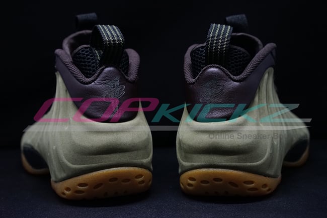 According to the color description, the Foamposite One will feature medium olive, velvet brown, black and light bone. Olive comes in across the nubuck side material while black takes over the tongue, collar and heel tab. Finally gum runs through the outsole and sole. The eyelets which differ from the original image used, which now come in metal similar to the Wheat Foamposite.