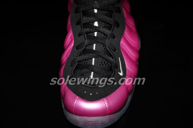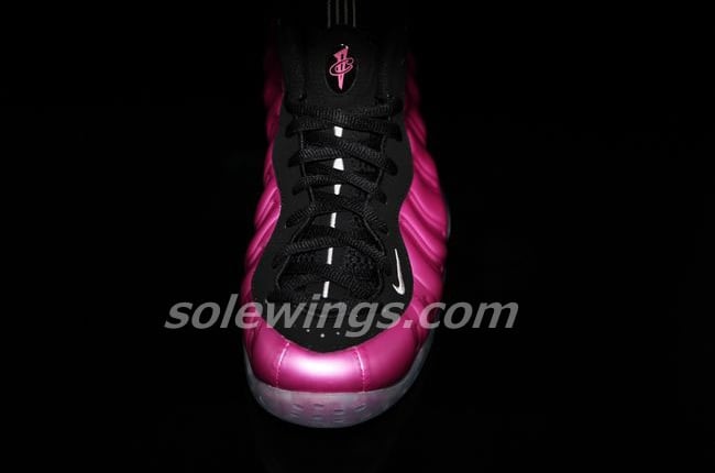 Sporting a pink Foamposite shell upper with matching accents on the branding, the kicks see the usual icy outsole, black nubuck eyestay, black mesh tongue and matching laces.