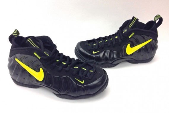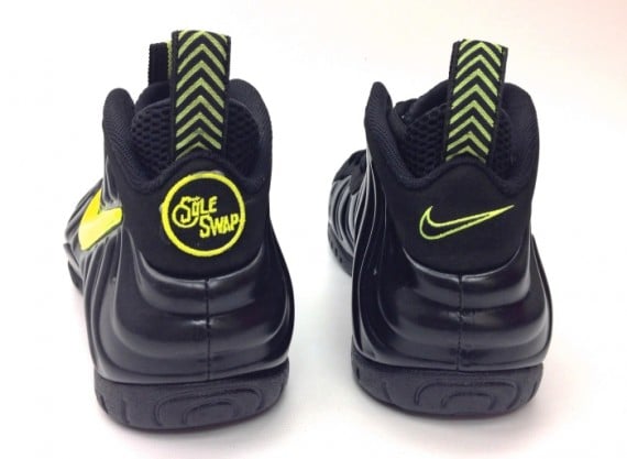 When it comes to custom Foams, sneaker customizer Sole Swap is no stranger to creating a one of a kind custom creation. Adding to his stellar resume is this pair of “Army Voltage” Nike Air Foamposite Pro. Using the Nike Air Foamposite Pro “Army Camo” as his base, Sole Swap was able to create this latest body of work simply by blacking out the shoes build, including the soles. Throw in a splash of yellow about the Swooshes to compliment the volt accents and you have this as your final product. Continue reading after the jump for a better look and be sure to drop us a line in the comments section below.