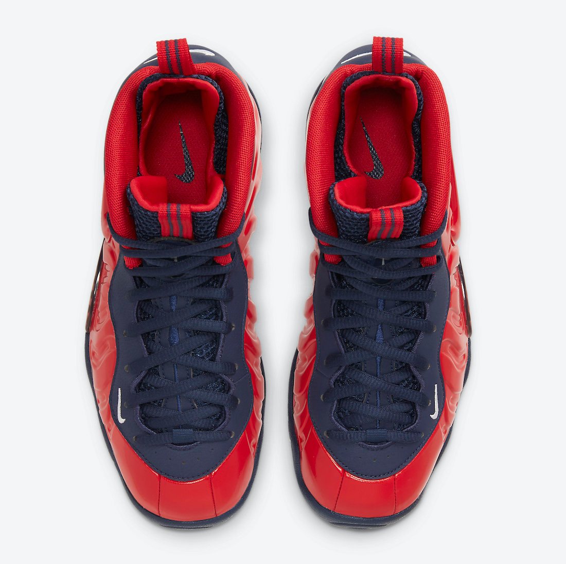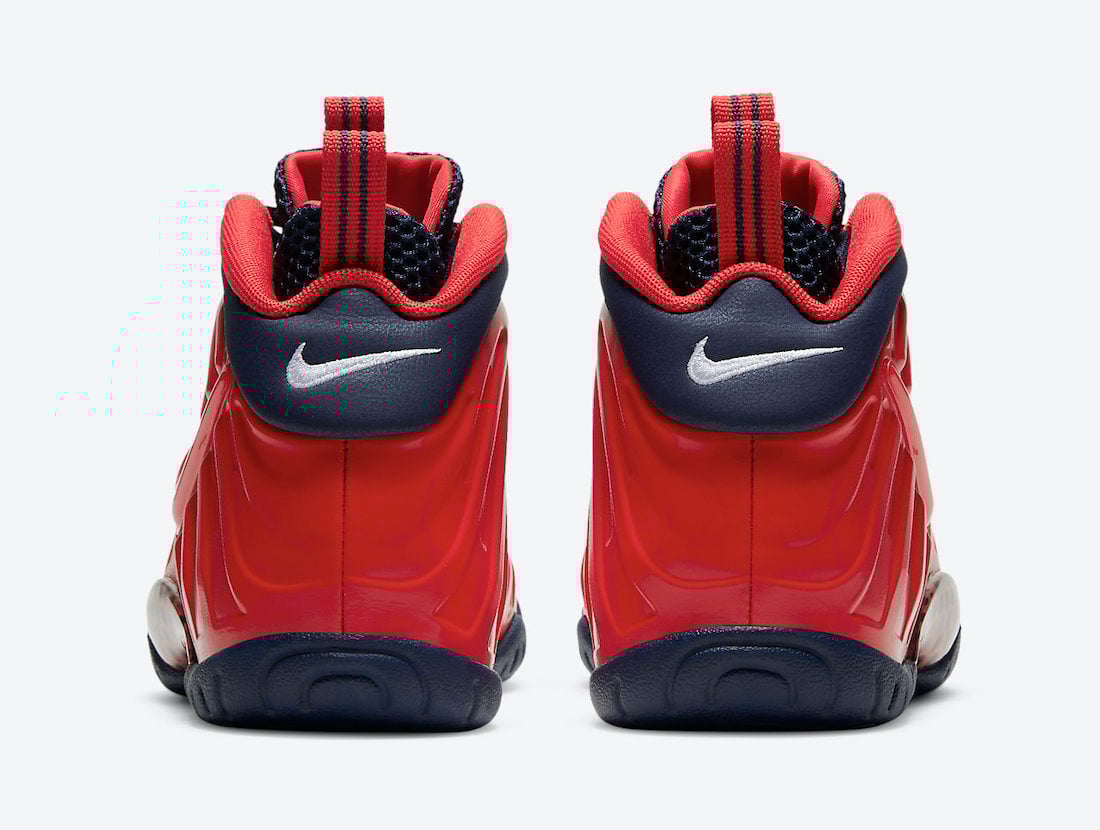 This Nike Air Foamposite Pro comes with Red on the Foamposite shell which expands onto the Swoosh, pull tabs, liner, and carbon fiber shank plate. Next, Navy adorns the heel, leather eyestay, tongue, heel, and rubber outsole. Finally, White appears on the Swoosh across the tongue, forefoot, heel, and outsole.