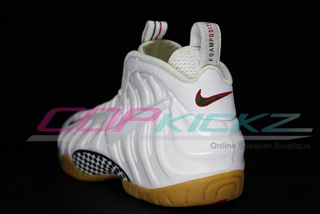 Update: Here is the newest set of photos of the Nike Foamposite Pro White Gucci from Copkickz.