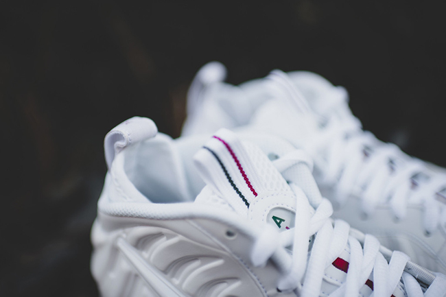Recently rumor spread that a white version of the Foamposite Pro Gucci would release and as you can see the rumor is true. Dressed in a white, gym red and gorge green color scheme. The Foamposite material gets treated to white while red and green hints are seen throughout. Other details include a carbon fiber plate and gum outsole.