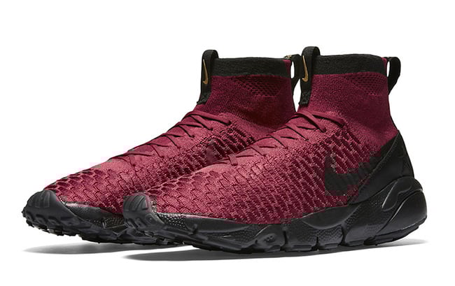 For those that don’t know, the Nike Air Footscape Magista is inspired by the Magista soccer cleat which is revamped for casual wear. As you can see, they feature a Burgundy hue through the uppers while featuring Flyknit. In addition, Black covers around the collar, Nike Swoosh, heel, midsole and outsole. Completing the look is Metallic Gold accents.