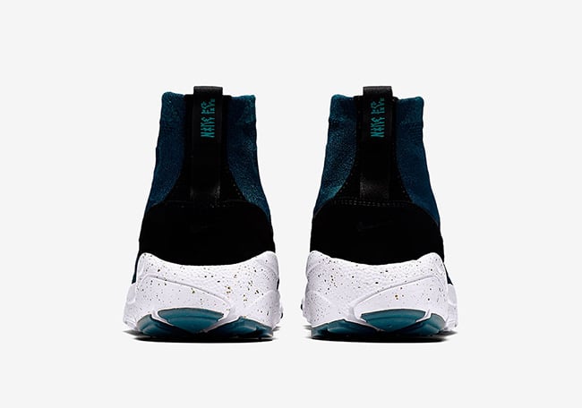 This Nike Air Footscape Magista Flyknit comes in Midnight Turquoise, Black and Royal Teal color combination. As you can see, Midnight Turquoise and Black weave together on the Flyknit base while Black is used once again around the heel and tabs. Other highlights include White through the midsole with a speckled overlay along with Nike F.C. on the heels.