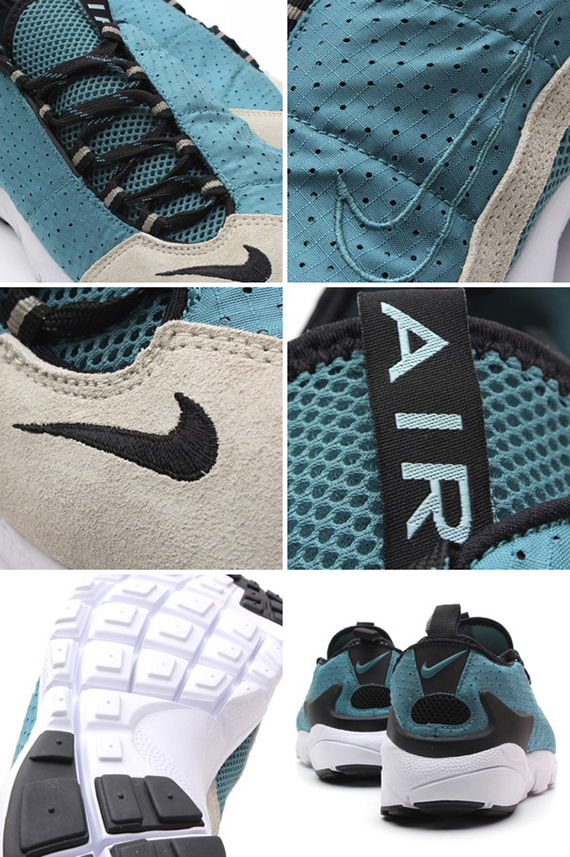 Sporting a subtle mineral teal perforated ripstop nylon, with the addition of some crisp light bone suede about the toe, accompanied by hints of black throughout is this latest pair of Nike Air Footscape Motions. Even though its Chukka counterpart has been laying a large claim to the motion grooved outsole, sneakerheads everywhere will surely be glad to see that the Nike Air Footscapes timeless silhouette will be taking back what is rightfully theres. Keep reading after the jump to check out the dope pics we have provided for all of you to check out. Be sure to keep checking with SneakerFiles for more information on when we can expect to see these drop in the U.S.