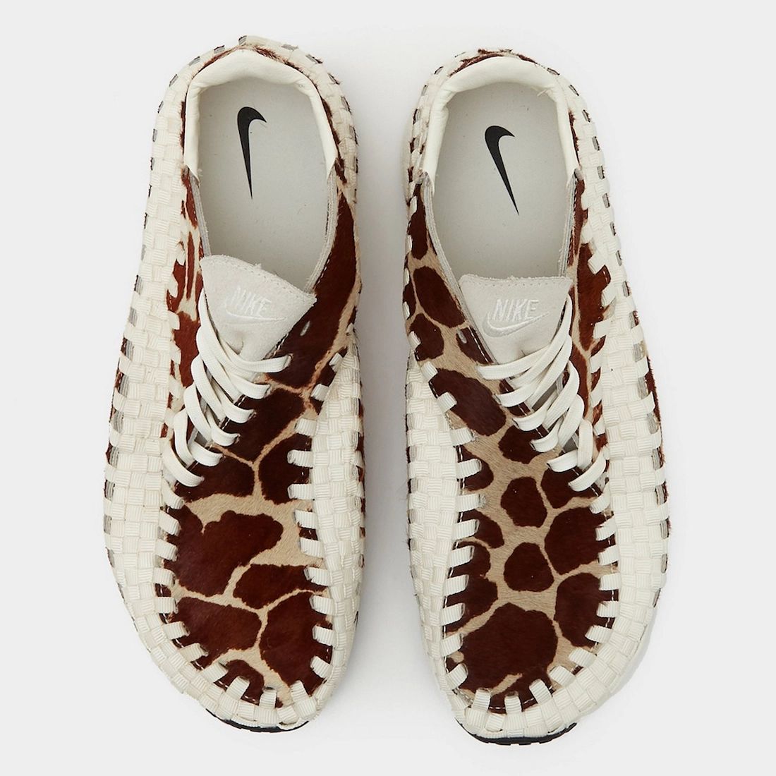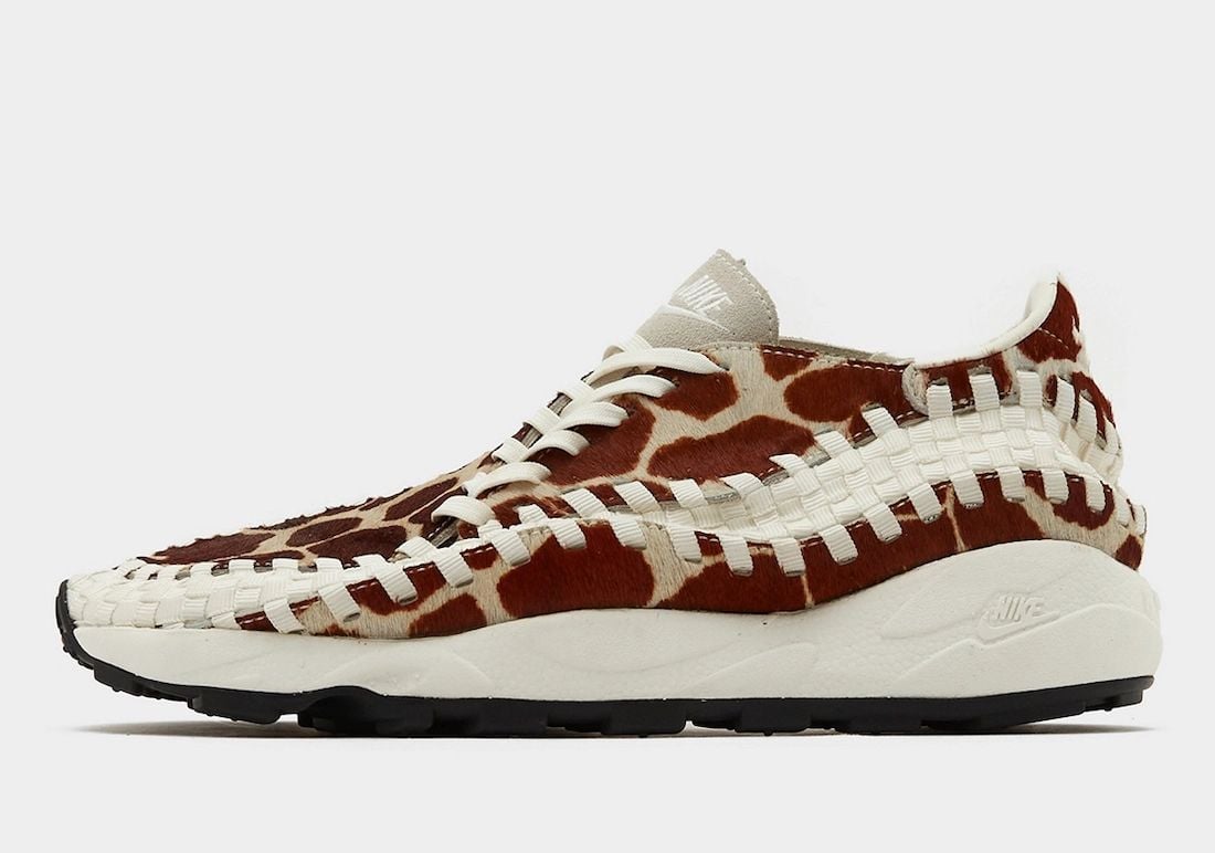 One of the upcoming colorways is known as โCow Printโ and will be available in womenโs sizing. This Nike Air Footscape Woven comes with a faux fur upper covered in cow-print and Sail on the asymmetrical lacing system and woven stripe that wraps the shoes. Tonal branding adorns the heels, tongues, and midsole. Other details include a Black Swoosh on the insoles and the same shade on the rubber outsole.